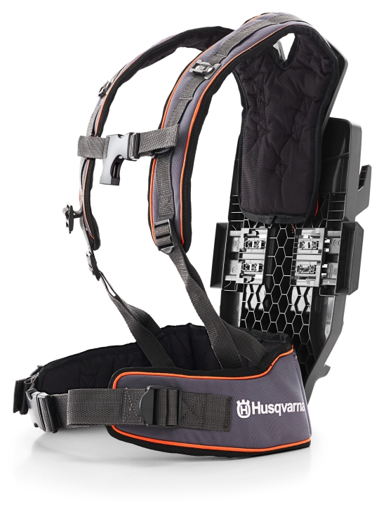 Ergonomiskt utformad sele för att bära ett ryggsäcksbatteri. Den gör det enkelt att ta bort eller byta batterier mellan användare samtidigt som selen hålls justerad för individuell passform.